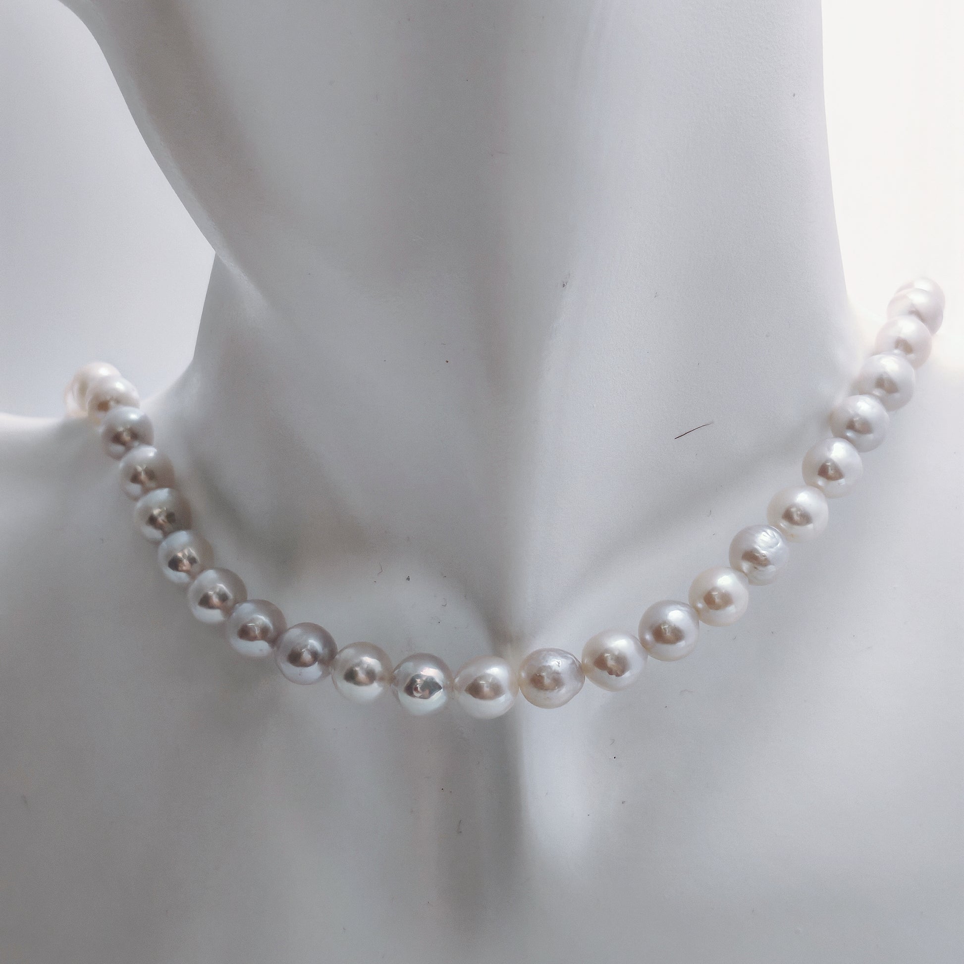 Elevate your style with our exquisite Light Blueish Grey Baroque Pearl Necklace. Each pearl is uniquely shaped, showcasing the natural beauty and elegance of baroque pearls. The soft blueish-grey hue gives this piece a sophisticated and contemporary feel, making it a perfect accessory for both casual and formal occasions.